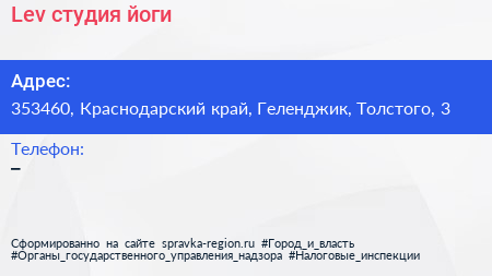 Lev, студия йоги по адресу 353460, Краснодарский край, Геленджик, Толстого, 3 в дальнейшем Организация, размещена в следующих категориях: