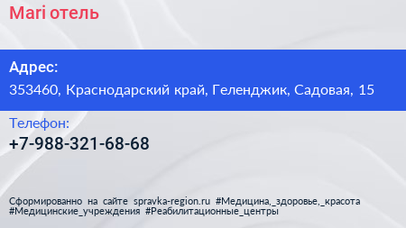 Mari, отель по адресу 353460, Краснодарский край, Геленджик, Садовая, 15 в дальнейшем Организация, размещена в следующих категориях: