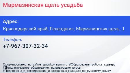 Мармазинская щель, усадьба по адресу Краснодарский край, Геленджик, Мармазинская щель, 1 в дальнейшем Организация, размещена в следующих категориях: