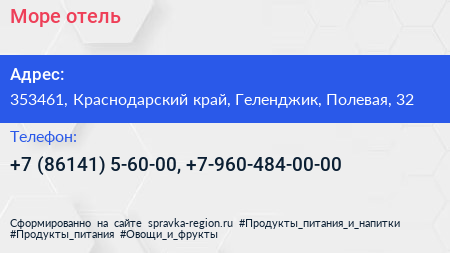 Море, отель по адресу 353461, Краснодарский край, Геленджик, Полевая, 32 в дальнейшем Организация, размещена в следующих категориях: