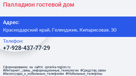 Палладион, гостевой дом по адресу Краснодарский край, Геленджик, Кипарисовая, 30 в дальнейшем Организация, размещена в следующих категориях: