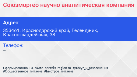 Союзморгео, научно-аналитическая компания по адресу 353461, Краснодарский край, Геленджик, Красногвардейская, 38 в дальнейшем Организация, размещена в следующих категориях: