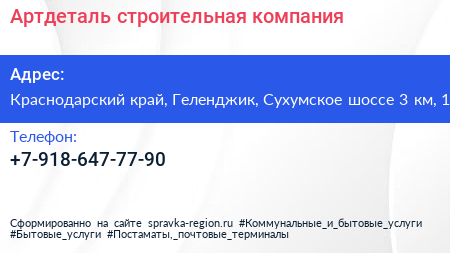 Артдеталь, строительная компания по адресу Краснодарский край, Геленджик, Сухумское шоссе 3 км, 1и в дальнейшем Организация, размещена в следующих категориях: