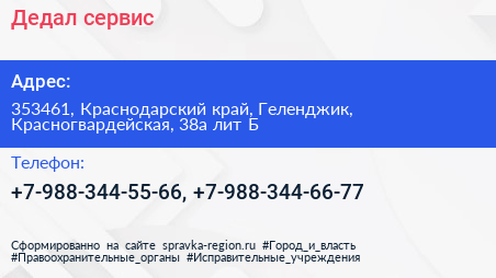 Дедал-сервис по адресу 353461, Краснодарский край, Геленджик, Красногвардейская, 38а лит Б в дальнейшем Организация, размещена в следующих категориях: