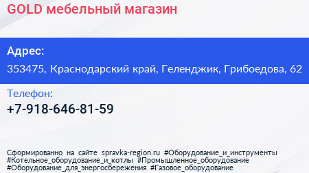 GOLD, мебельный магазин по адресу 353475, Краснодарский край, Геленджик, Грибоедова, 62 в дальнейшем Организация, размещена в следующих категориях: