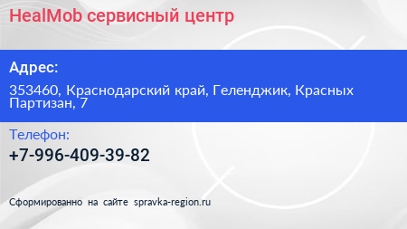 HealMob, сервисный центр по адресу 353460, Краснодарский край, Геленджик, Красных Партизан, 7 в дальнейшем Организация, размещена в следующих категориях: