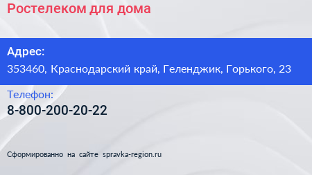 Ростелеком для дома по адресу 353460, Краснодарский край, Геленджик, Горького, 23 в дальнейшем Организация, размещена в следующих категориях: