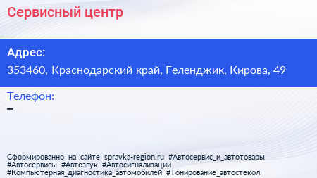 Сервисный центр по адресу 353460, Краснодарский край, Геленджик, Кирова, 49 в дальнейшем Организация, размещена в следующих категориях: