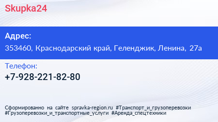 Skupka24 по адресу 353460, Краснодарский край, Геленджик, Ленина, 27а в дальнейшем Организация, размещена в следующих категориях: