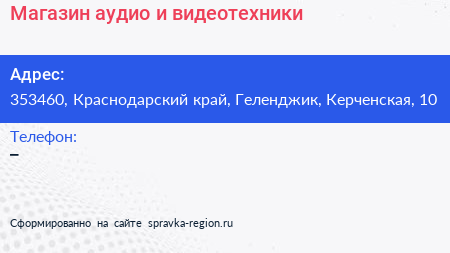 Магазин аудио и видеотехники по адресу 353460, Краснодарский край, Геленджик, Керченская, 10 в дальнейшем Организация, размещена в следующих категориях: