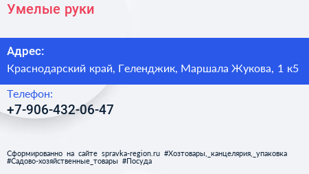Умелые руки по адресу Краснодарский край, Геленджик, Маршала Жукова, 1 к5 в дальнейшем Организация, размещена в следующих категориях: