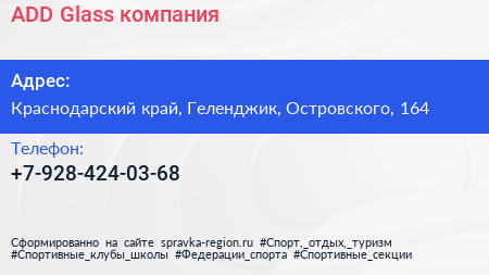 ADD Glass, компания по адресу Краснодарский край, Геленджик, Островского, 164 в дальнейшем Организация, размещена в следующих категориях:
