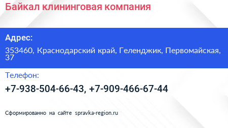 Байкал, клининговая компания по адресу 353460, Краснодарский край, Геленджик, Первомайская, 37 в дальнейшем Организация, размещена в следующих категориях: