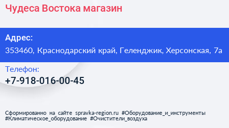 Чудеса Востока, магазин по адресу 353460, Краснодарский край, Геленджик, Херсонская, 7а в дальнейшем Организация, размещена в следующих категориях: