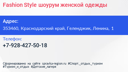 Fashion Style, шоурум женской одежды по адресу 353460, Краснодарский край, Геленджик, Ленина, 1 в дальнейшем Организация, размещена в следующих категориях: