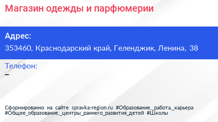 Магазин одежды и парфюмерии по адресу 353460, Краснодарский край, Геленджик, Ленина, 38 в дальнейшем Организация, размещена в следующих категориях: