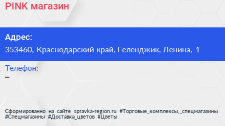 PINK, магазин по адресу 353460, Краснодарский край, Геленджик, Ленина, 1 в дальнейшем Организация, размещена в следующих категориях: