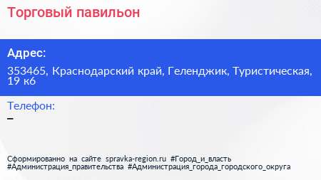 Торговый павильон по адресу 353465, Краснодарский край, Геленджик, Туристическая, 19 к6 в дальнейшем Организация, размещена в следующих категориях: