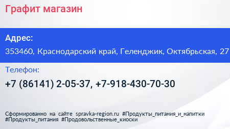 Графит, магазин по адресу 353460, Краснодарский край, Геленджик, Октябрьская, 27 в дальнейшем Организация, размещена в следующих категориях: