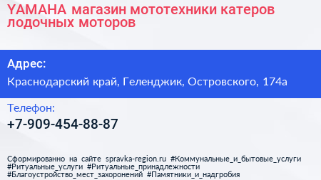 YAMAHA, магазин мототехники, катеров, лодочных моторов по адресу Краснодарский край, Геленджик, Островского, 174а в дальнейшем Организация, размещена в следующих категориях: