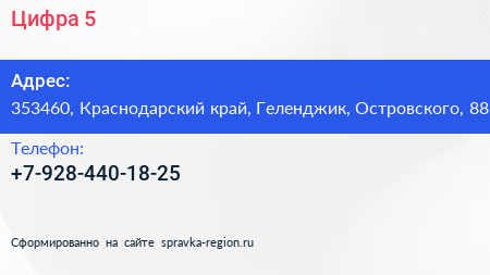 Цифра №5 по адресу 353460, Краснодарский край, Геленджик, Островского, 88 в дальнейшем Организация, размещена в следующих категориях:
