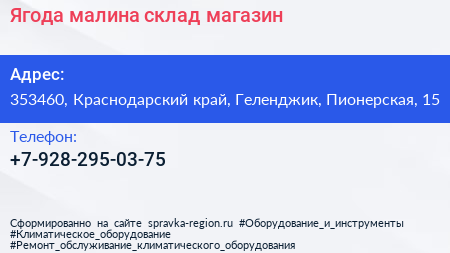 Ягода малина, склад-магазин по адресу 353460, Краснодарский край, Геленджик, Пионерская, 15 в дальнейшем Организация, размещена в следующих категориях: