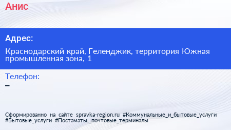 Анис по адресу Краснодарский край, Геленджик, территория Южная промышленная зона, 1 в дальнейшем Организация, размещена в следующих категориях: