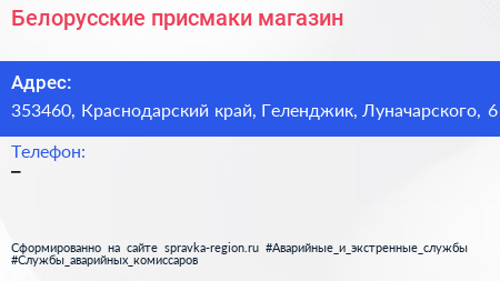 Белорусские присмаки, магазин по адресу 353460, Краснодарский край, Геленджик, Луначарского, 6 в дальнейшем Организация, размещена в следующих категориях: