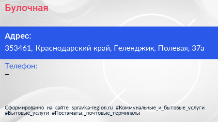 Булочная по адресу 353461, Краснодарский край, Геленджик, Полевая, 37а в дальнейшем Организация, размещена в следующих категориях: