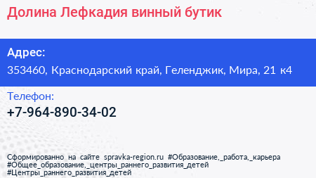 Долина Лефкадия, винный бутик по адресу 353460, Краснодарский край, Геленджик, Мира, 21 к4 в дальнейшем Организация, размещена в следующих категориях: