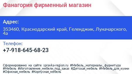Фанагория, фирменный магазин по адресу 353460, Краснодарский край, Геленджик, Луначарского, 4а в дальнейшем Организация, размещена в следующих категориях: