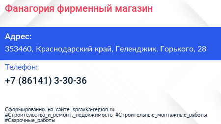 Фанагория, фирменный магазин по адресу 353460, Краснодарский край, Геленджик, Горького, 28 в дальнейшем Организация, размещена в следующих категориях: