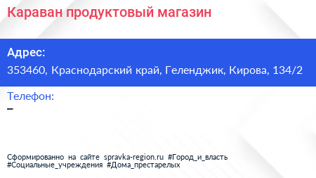 Караван, продуктовый магазин по адресу 353460, Краснодарский край, Геленджик, Кирова, 134/2 в дальнейшем Организация, размещена в следующих категориях: