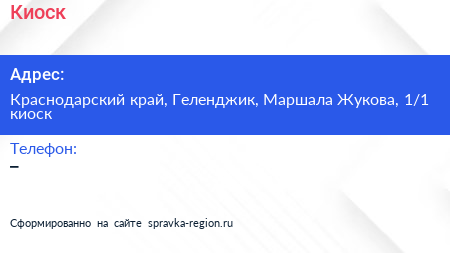 Киоск по адресу Краснодарский край, Геленджик, Маршала Жукова, 1/1 киоск в дальнейшем Организация, размещена в следующих категориях: