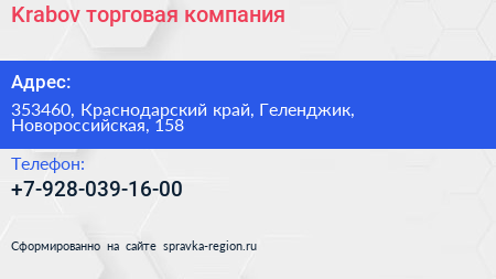 Krabov, торговая компания по адресу 353460, Краснодарский край, Геленджик, Новороссийская, 158 в дальнейшем Организация, размещена в следующих категориях: