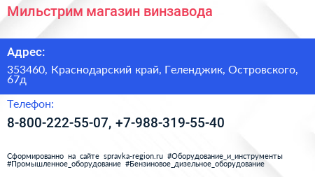 Мильстрим, магазин винзавода по адресу 353460, Краснодарский край, Геленджик, Островского, 67д в дальнейшем Организация, размещена в следующих категориях: