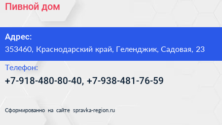 Пивной дом по адресу 353460, Краснодарский край, Геленджик, Садовая, 23 в дальнейшем Организация, размещена в следующих категориях: