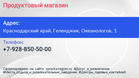 Продуктовый магазин по адресу Краснодарский край, Геленджик, Океанологов, 1 в дальнейшем Организация, размещена в следующих категориях: