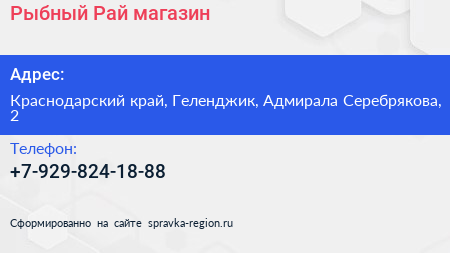 Рыбный Рай, магазин по адресу Краснодарский край, Геленджик, Адмирала Серебрякова, 2 в дальнейшем Организация, размещена в следующих категориях: