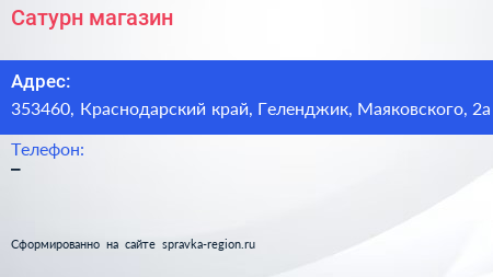 Сатурн, магазин по адресу 353460, Краснодарский край, Геленджик, Маяковского, 2а в дальнейшем Организация, размещена в следующих категориях: