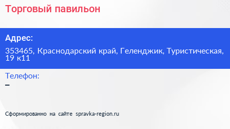 Торговый павильон по адресу 353465, Краснодарский край, Геленджик, Туристическая, 19 к11 в дальнейшем Организация, размещена в следующих категориях:
