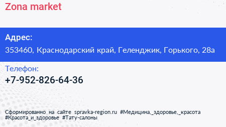 Zona market по адресу 353460, Краснодарский край, Геленджик, Горького, 28а в дальнейшем Организация, размещена в следующих категориях: