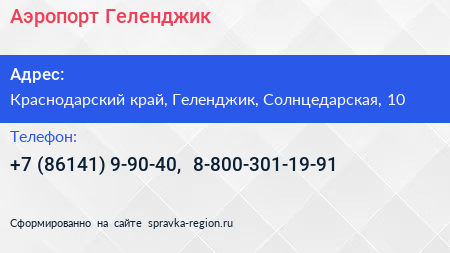 Аэропорт Геленджик по адресу Краснодарский край, Геленджик, Солнцедарская, 10 в дальнейшем Организация, размещена в следующих категориях: