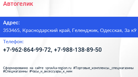 Автогелик по адресу 353465, Краснодарский край, Геленджик, Одесская, 3а к9 в дальнейшем Организация, размещена в следующих категориях: