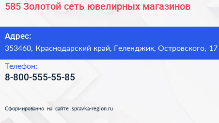 585 Золотой, сеть ювелирных магазинов по адресу 353460, Краснодарский край, Геленджик, Островского, 17 в дальнейшем Организация, размещена в следующих категориях: