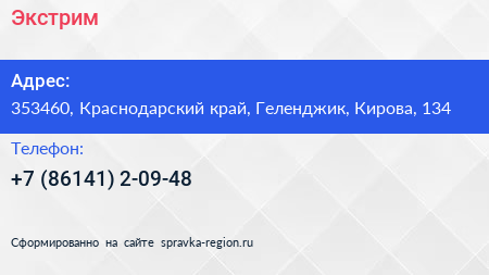 Экстрим по адресу 353460, Краснодарский край, Геленджик, Кирова, 134 в дальнейшем Организация, размещена в следующих категориях: