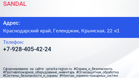 SANDAL по адресу Краснодарский край, Геленджик, Крымская, 22 к1 в дальнейшем Организация, размещена в следующих категориях: