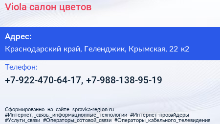 Viola, салон цветов по адресу Краснодарский край, Геленджик, Крымская, 22 к2 в дальнейшем Организация, размещена в следующих категориях: