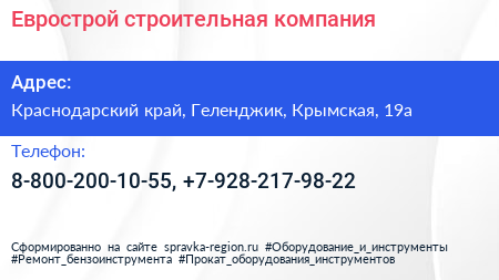 Еврострой, строительная компания по адресу Краснодарский край, Геленджик, Крымская, 19а в дальнейшем Организация, размещена в следующих категориях: