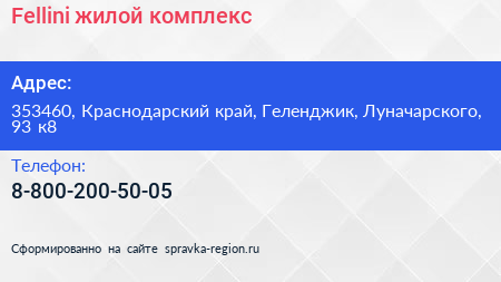 Fellini, жилой комплекс по адресу 353460, Краснодарский край, Геленджик, Луначарского, 93 к8 в дальнейшем Организация, размещена в следующих категориях: